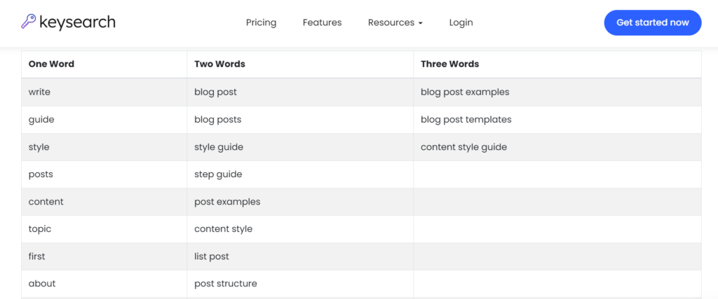 Keysearch LSI Keywords Generator is a free tool that lets you search for LSI keywords related to your primary keyword. All you need to do is insert your keyword in the search bar, as shown in the image below, and LSI Keywords Generator will generate one, two-word, and three-word keywords for you for free!